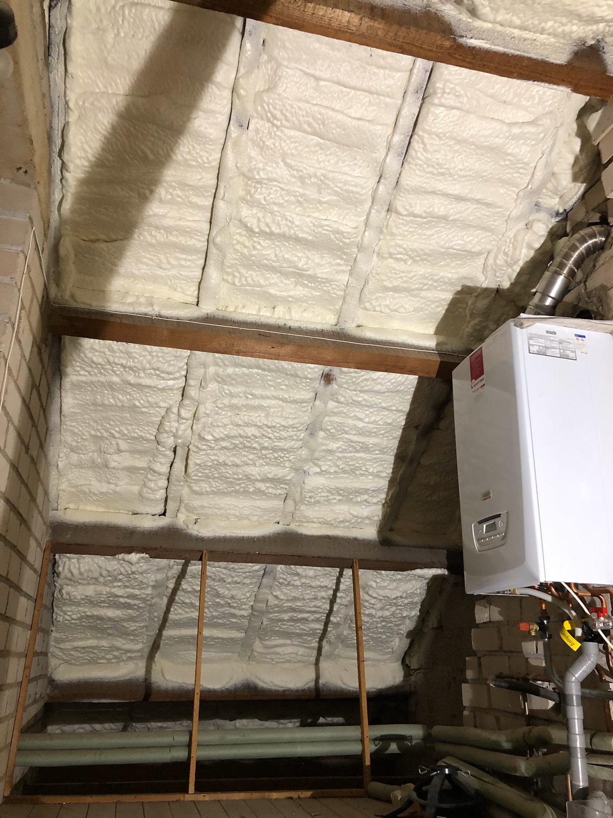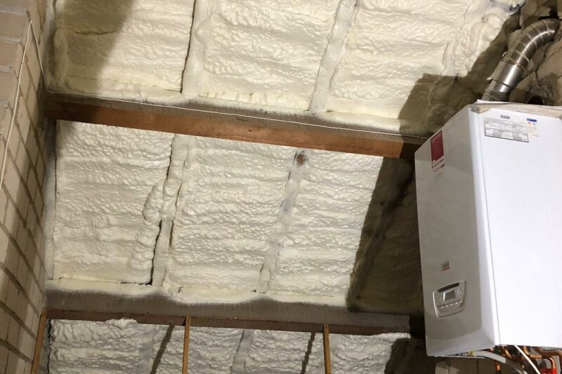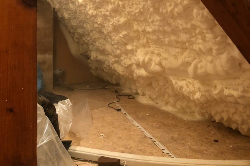 Icynene H2 Foam Lite schuimisolatie wordt direct tegen de onderzijde van het dak gespoten;